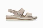Mobils women’s wedge sandals Darcie. Easy to slip on and comfortable, this sandal will match your every whim. The leather lining ensures a healthy climate inside the sandal. This beige sandal for women is made from leather with a subtle glitter-effect.