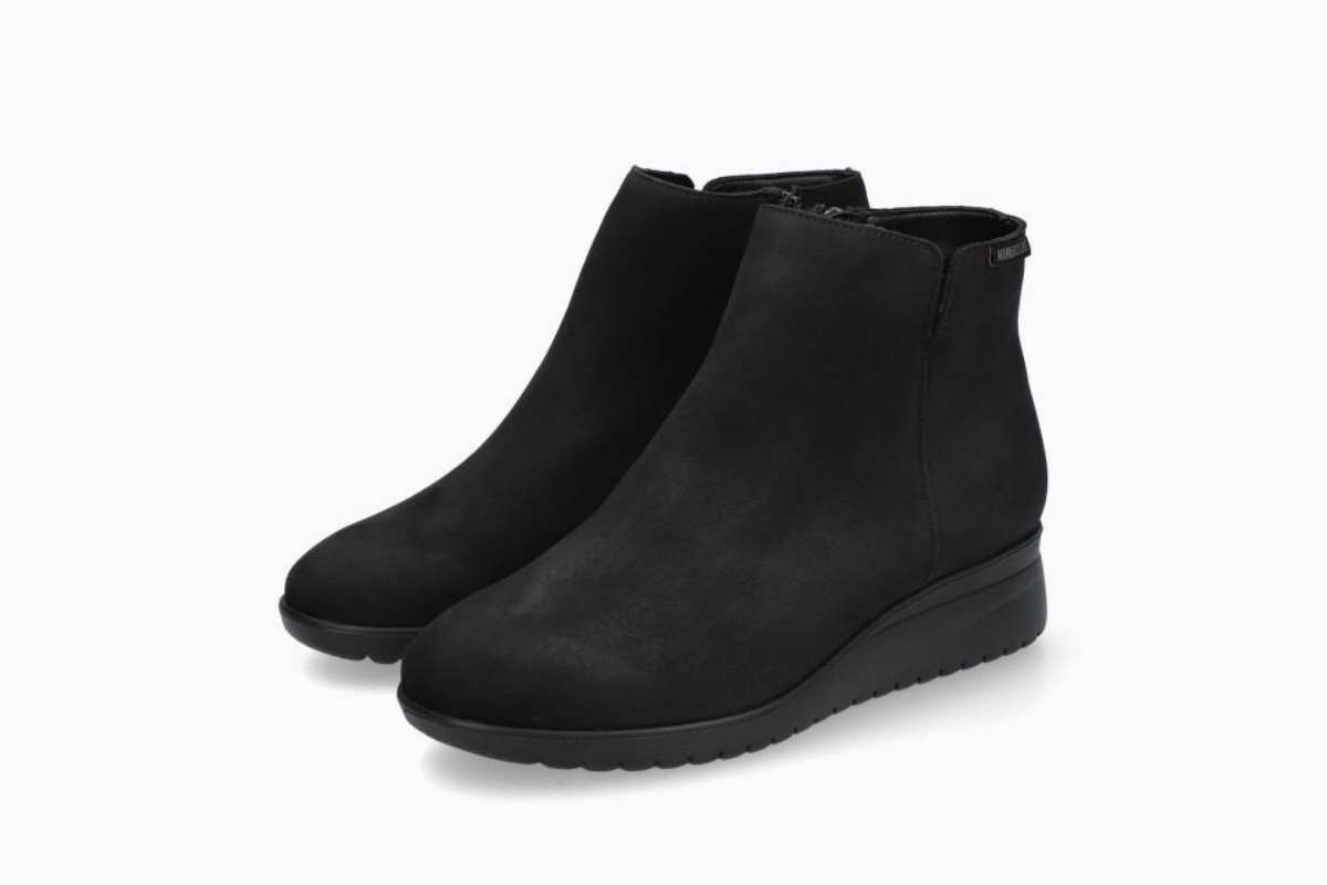 Mephisto women’s ankle boots Idora. A perfect blend of casual style and everyday comfort, this ankle boot ensures a snug fit and lasting wearability. The soft, warm lining keeps your feet cozy, offering excellent thermal insulation. Crafted from high-quality black nubuck leather, this women’s boot is both versatile and effortlessly stylish.